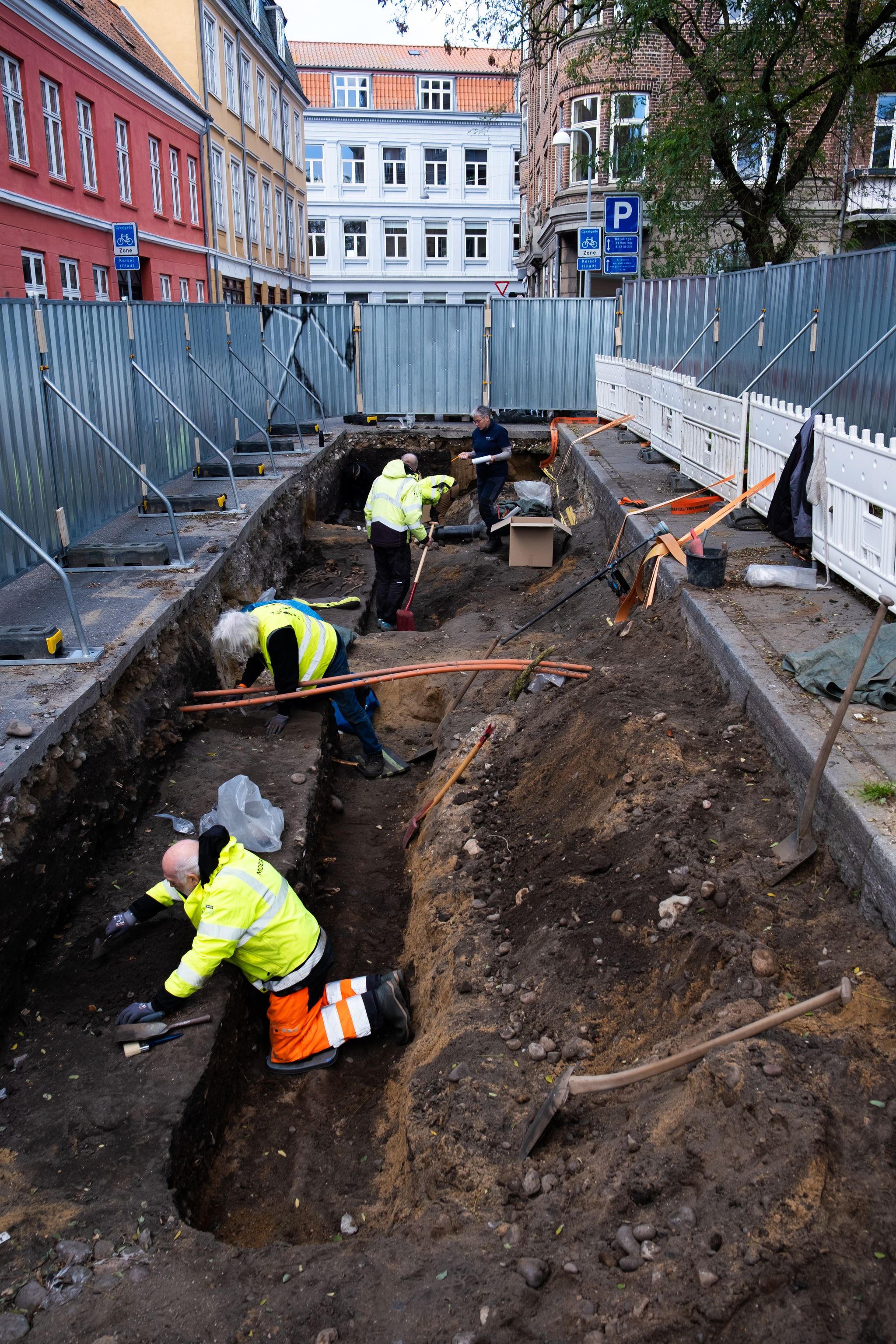 ◀ Udgravningen er foretaget i forbindelse med Aarhus Kommunes etablering af nye affaldscontainere.
