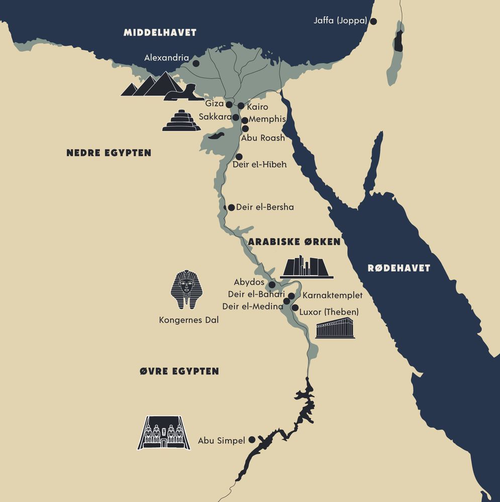 En række uafhængige høvdingedømmer omkring den frugtbare Nil – verdens største flod – blev omkring 3150 f.Kr. samlet i verdens første kongedømme. Kongen blev den første farao i en lang række, der herskede over et forenet Egypten indtil romertiden efter Kristi fødsel. Faraoerne blev opfattet som guddommelige, og der var en tæt sammenvævning af, hvad vi i dag vil anse som politik og religion.
