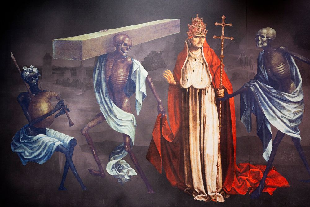 Kirken ønskede at konstant påminde folk om vigtigheden i at leve med tanke på sjælens endelige frelse. Motivet ’dødedansen’ dukkede op malet i klostre og kirker og forestillede døden i skikkelse af et skelet, der dansede blandt de levende.